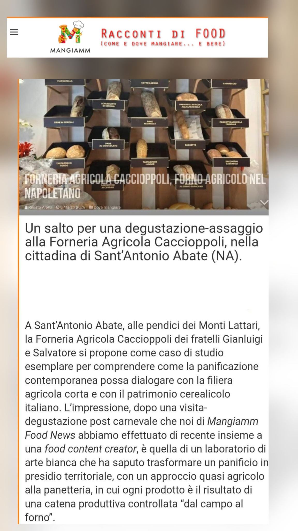 Mangiamm Racconti di Food | Forneria Agricola Caccioppoli, forno agricolo nel napoletano