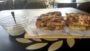Il saporito tegliuccio della Forneria Agricola Caccioppoli è una sorta di pizza/focaccia ottenuta dalle farine e dalle materie prime prodotte nei propri terreni. L’impasto è realizzato attraverso la “proteasi controllata”, processo di scomposizione delle proteine che favorisce la masticazione e la leggerezza. Risulta piacevolmente fragrante la sua croccantezza che quasi si dissolve al morso mentre al palato è scioglievole e mai gommoso grazie alla cottura al cuore che arriva a una temperatura di 99°C.