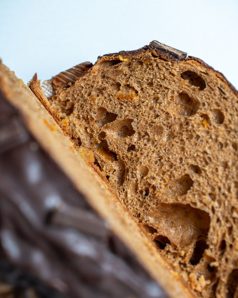 All’impasto, ottenuto da lievito madre, è applicato un processo di lievitazione di almeno 36 ore, regalando scioglievolezza e alveoli allungati e ben distribuiti, per una texture soffice e leggera.